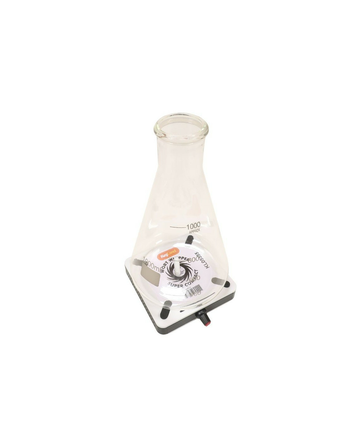 Utiliser une fiole Erlenmeyer de 1000 ml. jusqu’à 5000 ml. et vous obtiendrez toujours un excellent résultat. Garder le courant bas suffit à faire démarrer la levure, pas besoin de créer un vortex écrasant, un petit vortex fera l’affaire.