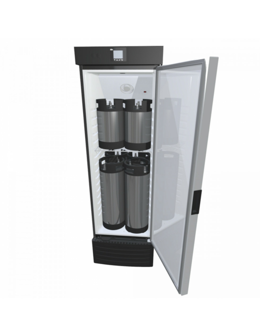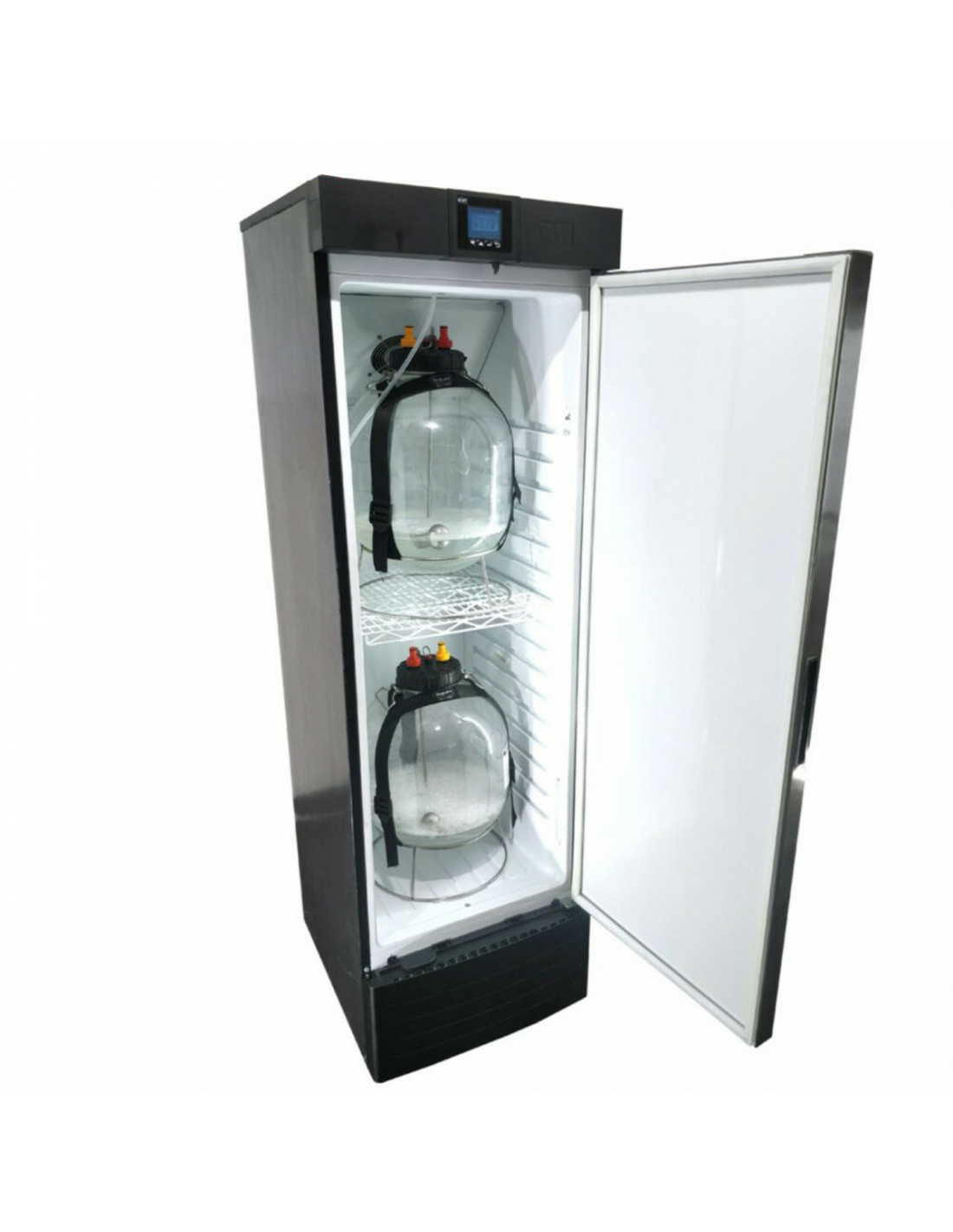 Cette chambre polyvalente peut également être utilisée comme kegerator. Elle offre une capacité de stockage de fûts, supérieure à celle d’un kegerator conventionnel de même dimension. Cette unité peut contenir 4 fûts de 19 litres au sol et dispose de suffisamment d’espace pour y placer une autre couche de fûts de 9,5 litres. Pour installer des robinets de bière, vous pouvez percer vos propres trous à travers la porte.
