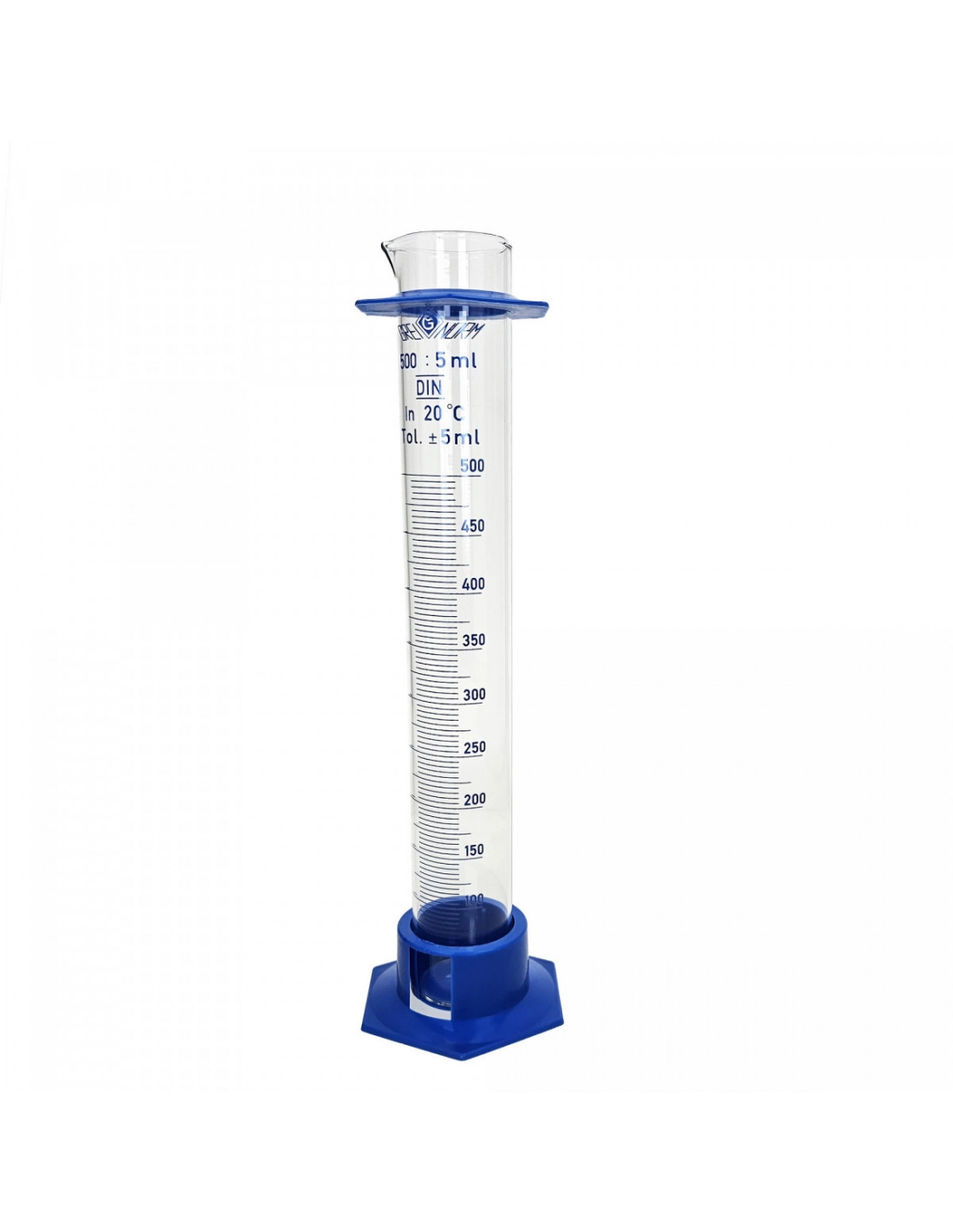 Graduée, avec bec à verser et pied stable hexagonal en plastique.
