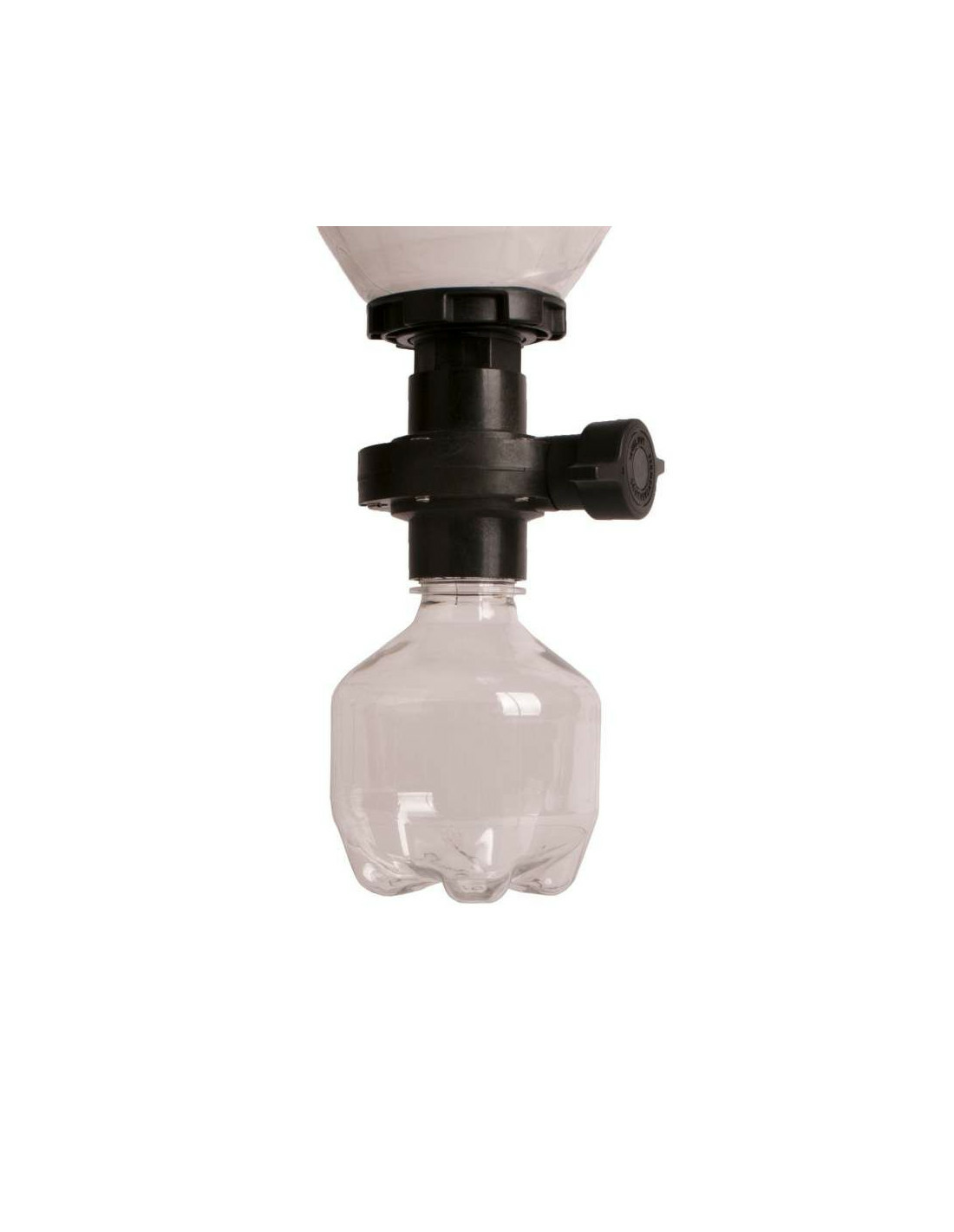 Bouteille de collecte avec couvercle qui se visse sur la base de la vanne d’évacuation du Fermentasaurus pour conserver la levure.