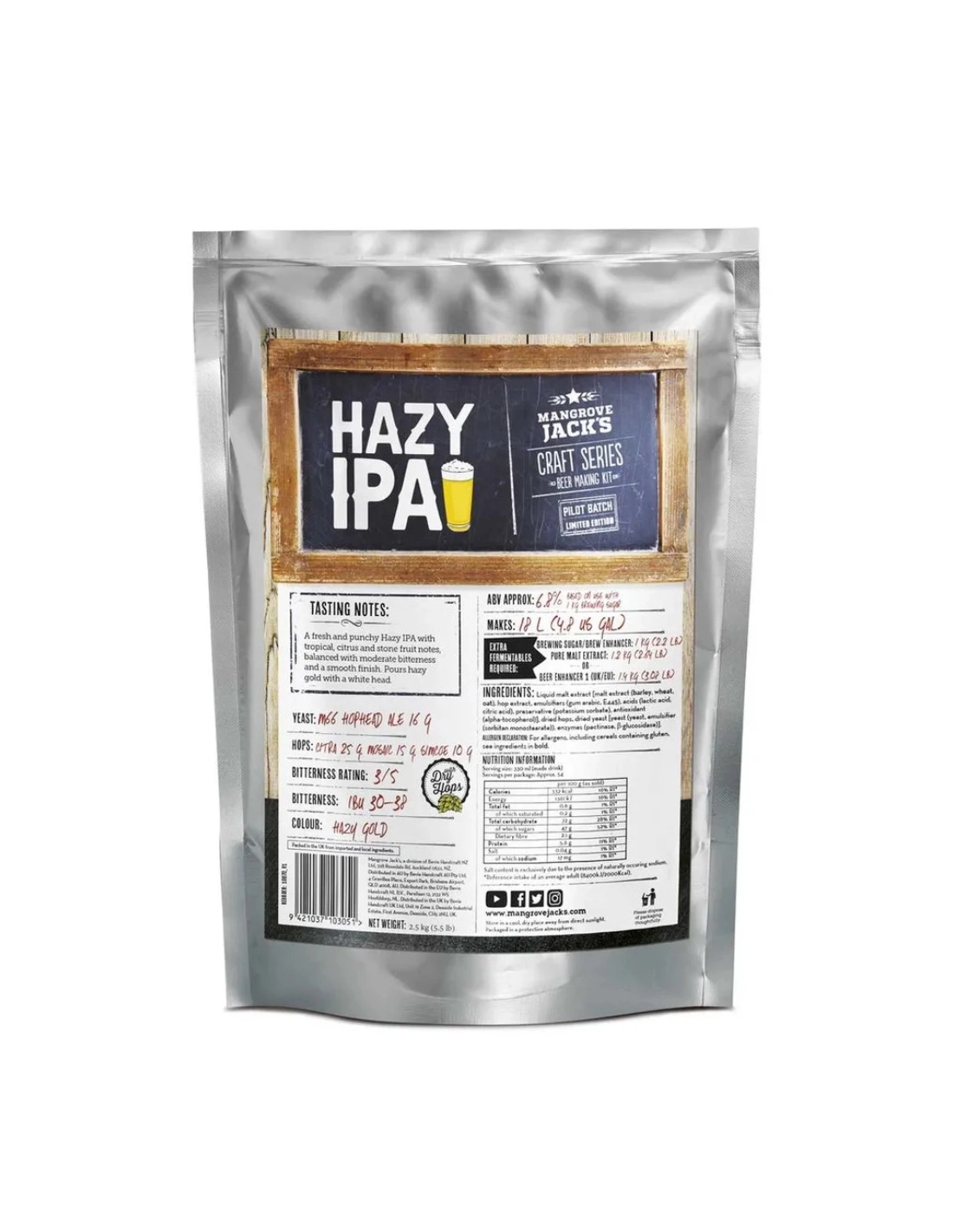 La pochette contient deux compartiments. Un côté est soigneusement rincé à l’azote et rempli à froid d’un délicieux extrait de malt houblonné qui a été spécifiquement sélectionné pour correspondre à chaque style de bière unique. L’autre côté contient des instructions, une souche de levure Craft Series soigneusement sélectionnée, adaptée au style choisi et, selon le kit, un sachet regorgeant de houblon sec aromatique pour infuser l’infusion avec une couche supplémentaire de saveur et d’arôme.