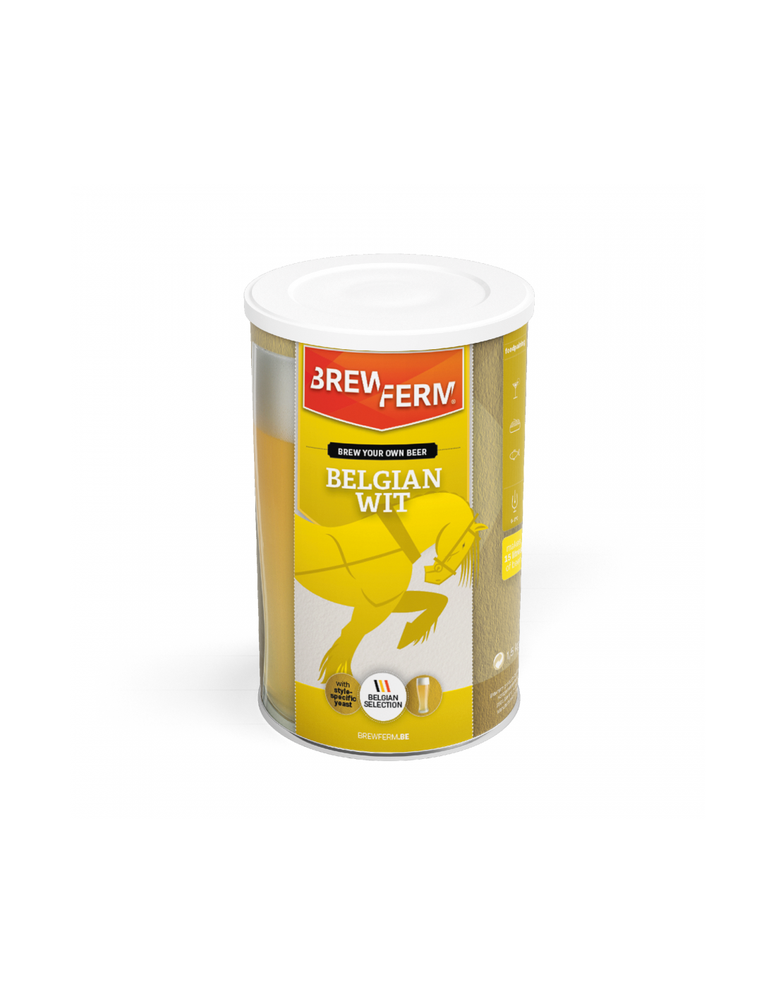 Il suffit donc d’ajouter de l’eau, du sucre et la levure spéciale (fixée sous le couvercle) au contenu de la boîte pour faire de 7 à 20 litres de bière superbe. La marque BREWFERM a su élaborer une série unique de concentrés de bière par un mélange adéquat de produits purement naturels. Tous ces mélanges spécifiques fournissent une bière excellente pouvant supporter toute comparaison avec les bières commerciales. De plus ce sont des bières vivantes, saines et naturelles, se conservant sans produits chimiques.