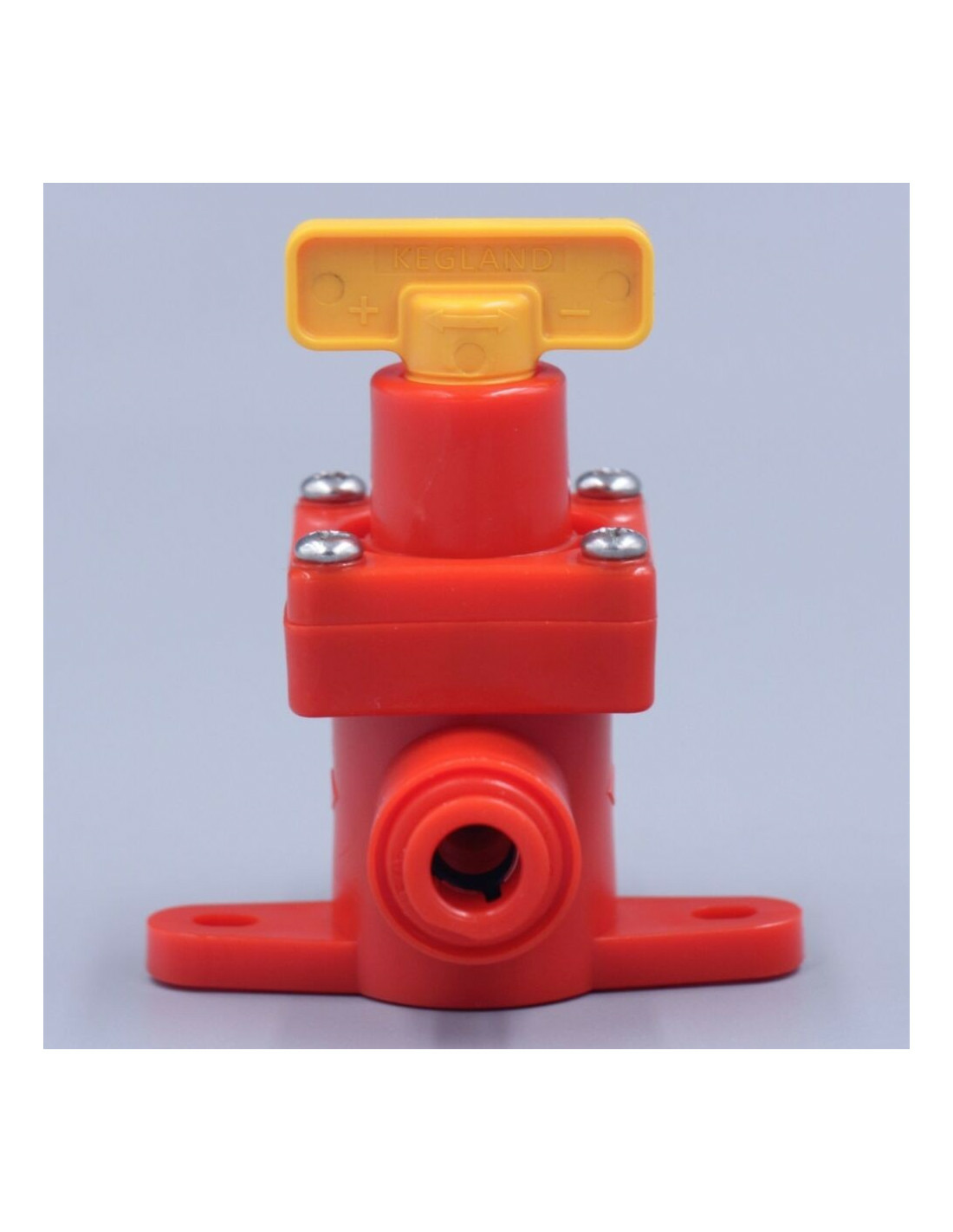 Utilisez le bouton de réglage jaune pour contrôler la pression sortant du récipient sous pression. Dans le sens des aiguilles d’une montre, la pression est plus élevée et dans le sens inverse des aiguilles d’une montre, la pression est inférieure.