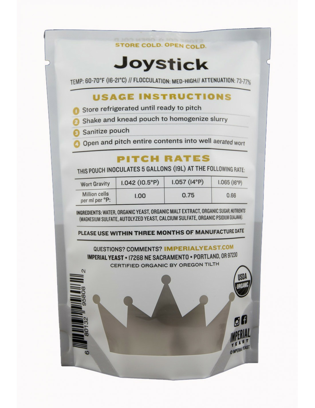 Cette souche de levure liquide est rapide et peut être utilisée à l’extrémité inférieure du spectre de fermentation de la bière pour la garder propre. Joystick est un excellent choix pour les grosses bières maltées à forte teneur en alcool, mais brillera tout aussi bien dans une double IPA houblonnée.
