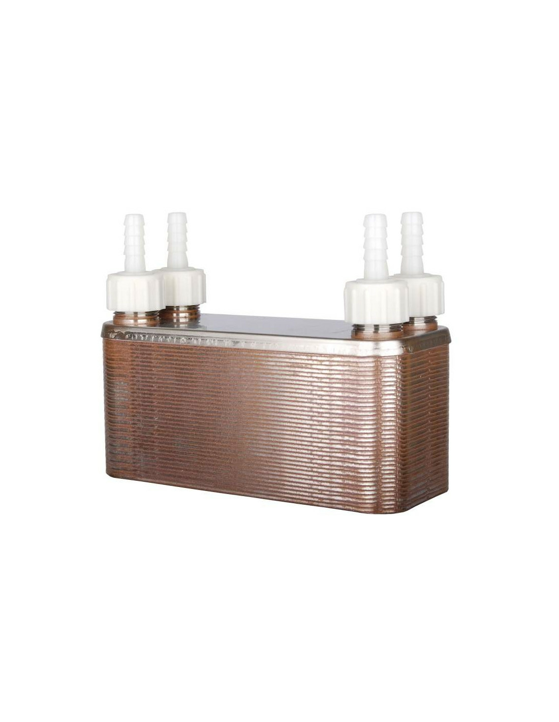 Le refroidisseur est livré avec raccords de tuyau (12 mm) et mode d’emploi, les tuyaux ne sont pas inclus. Le tuyau apte à convoyer le moût chaud est notre tuyau en silicone (n° d’article : 018.055.4). Pour l’eau froide vous pouvez utiliser le tuyau suivant (n° d’article : 018.068.7).