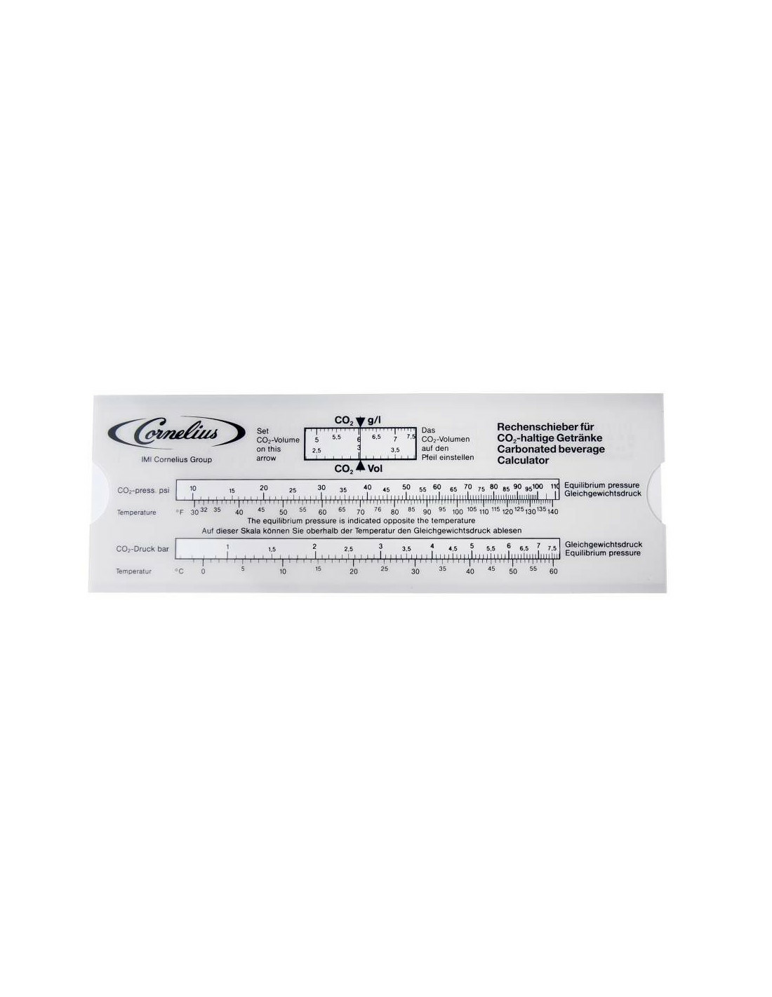 Avec cette règle à calcul pratique vous pouvez facilement calculer le taux de CO2 dans votre bière, tenant compte de la température et de la pression. Aussi indispensable pour régler la pression des pompes à bière.