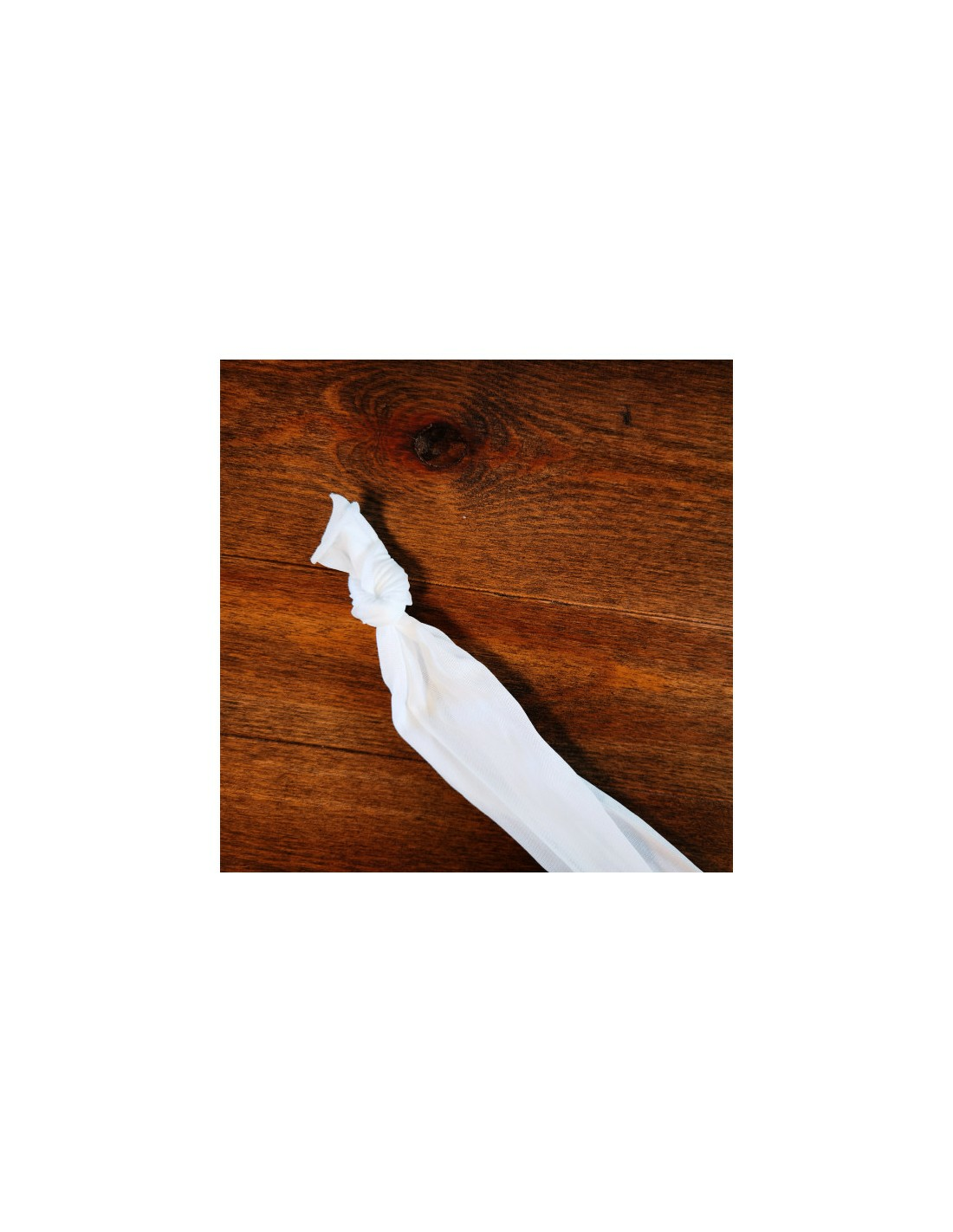 Les filets à bière Greenflex sont très faciles à utiliser. Prenez le rouleau et découpez une pièce de la longueur souhaitée. Faites un nœud en bas du filet pour le fermer. Remplissez le filet de granulés de houblon, par exemple, puis fermez-le en faisant un nœud sur le dessus.